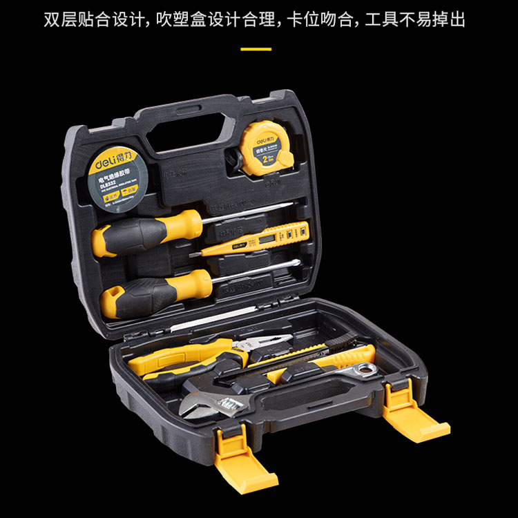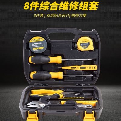 得力工具8件綜合維修組套五金工具箱多功能套裝