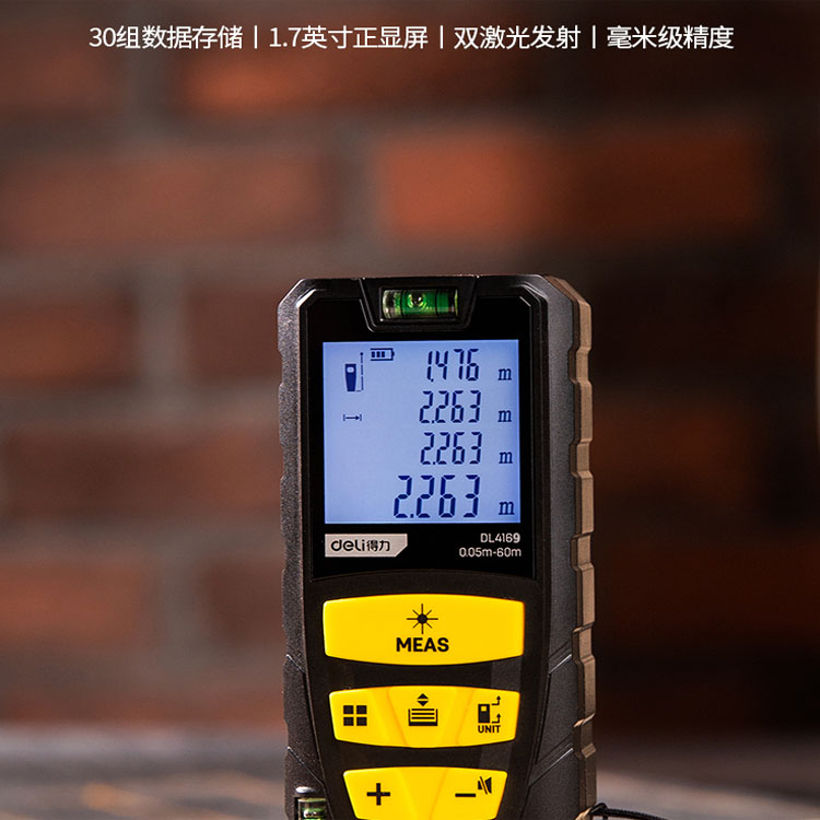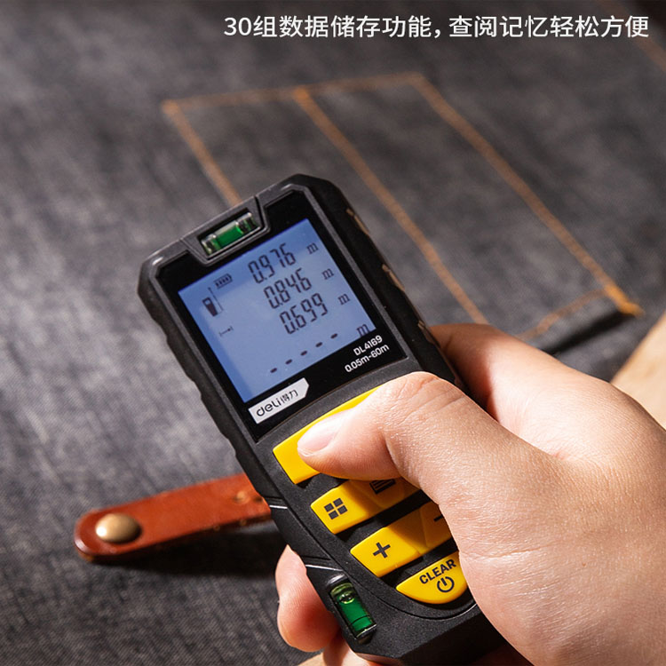 得力手持式激光測(cè)距儀高精度電子尺家用紅外量房?jī)x40-120米測(cè)房?jī)x