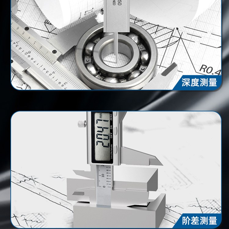游標(biāo)卡尺四種測(cè)量功能:外徑測(cè)量、內(nèi)徑測(cè)量、深度測(cè)量、臺(tái)階測(cè)量。