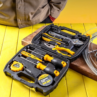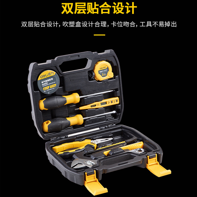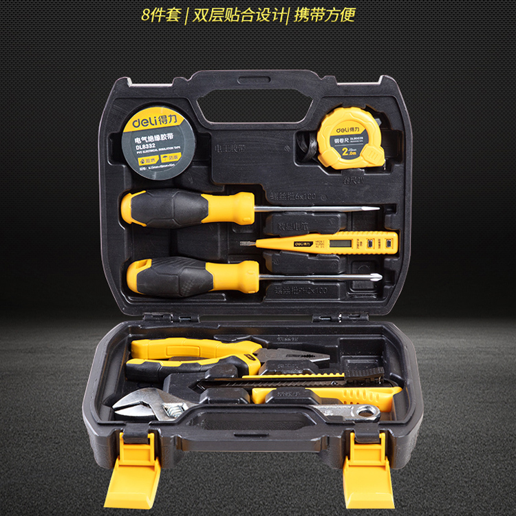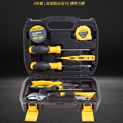 得力工具8件綜合維修組套五金工具箱多功能套裝