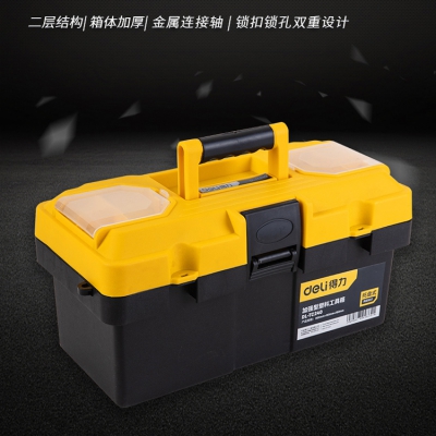 得力工具箱加強(qiáng)型多功能手提式塑料大號(hào)家用維修工具盒工具收納箱