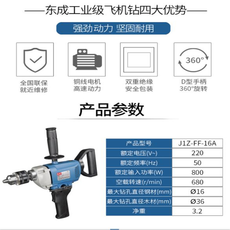 東成手電鉆J1Z-FF03-13B/J1Z-FF-16A/J1Z-FF03-16A飛機鉆工業(yè)大功率電鉆手槍鉆膩子粉攪拌打灰機東城電動工具