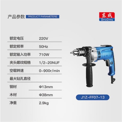 東成手電鉆J1Z-FF07-13正反轉(zhuǎn)710W可調(diào)速大功率開孔家用手槍鉆電動工具