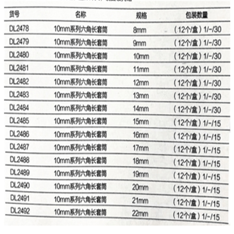 得力套筒10mm系列六角長套筒參數(shù)