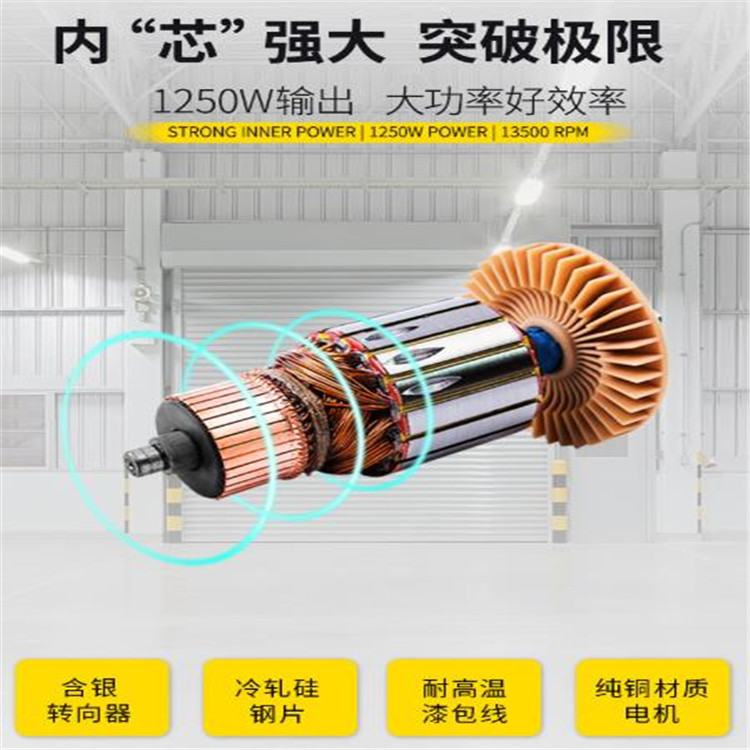 得力石材切割機(jī)內(nèi)“芯”強(qiáng)大,突破極限,1250W輸出,大功率好效率