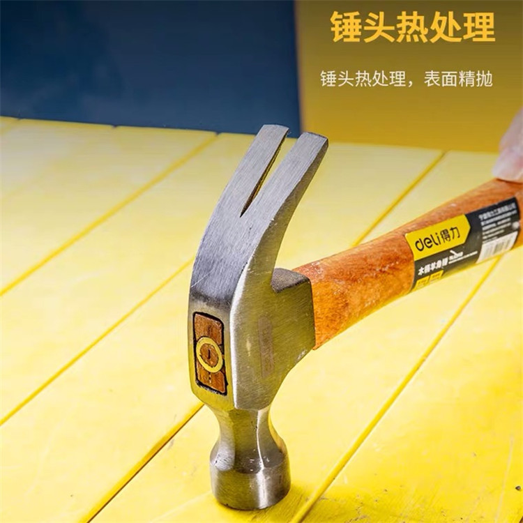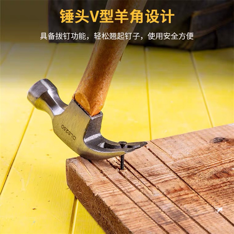 得力木柄羊角錘錘頭V型羊角設(shè)計,具備拔釘功能,使用安全方便