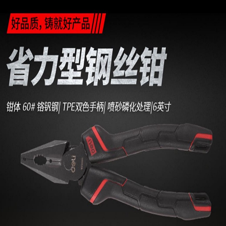 得力省力型鋼絲鉗采用60#鉻釩鋼精工鍛造,噴砂磷化處理,防銹效果好
