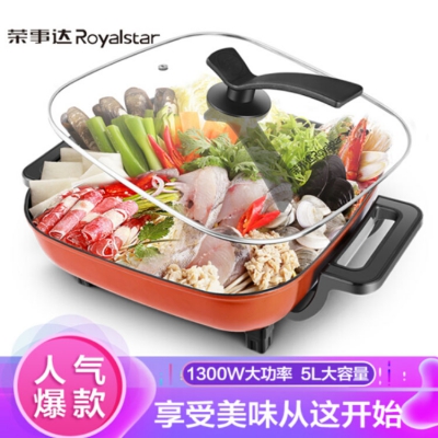 榮事達(dá)(Royalstar)電火鍋?lái)n式家用多功能5L電煮鍋電熱鍋電炒鍋
