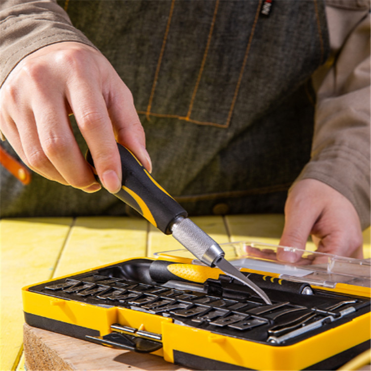 得力手工剪紙刻刀刀頭采用SK5彈簧鋼,經(jīng)熱處理后硬度達(dá)40-45HRC。