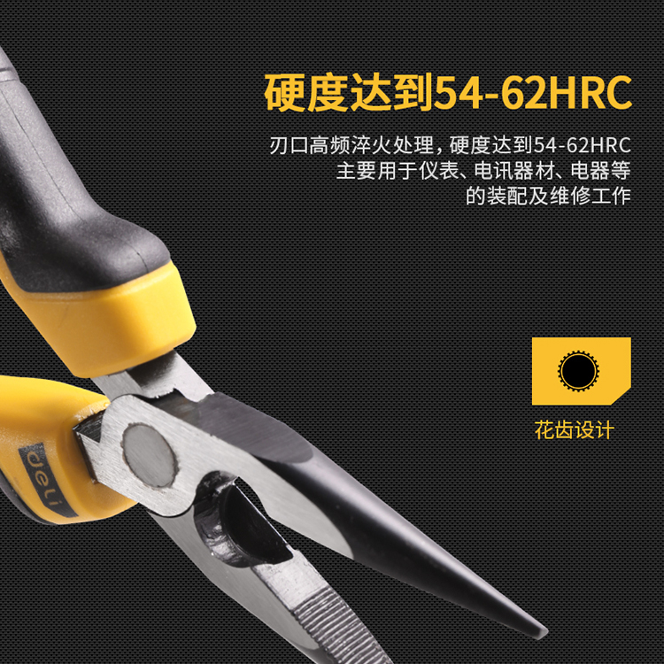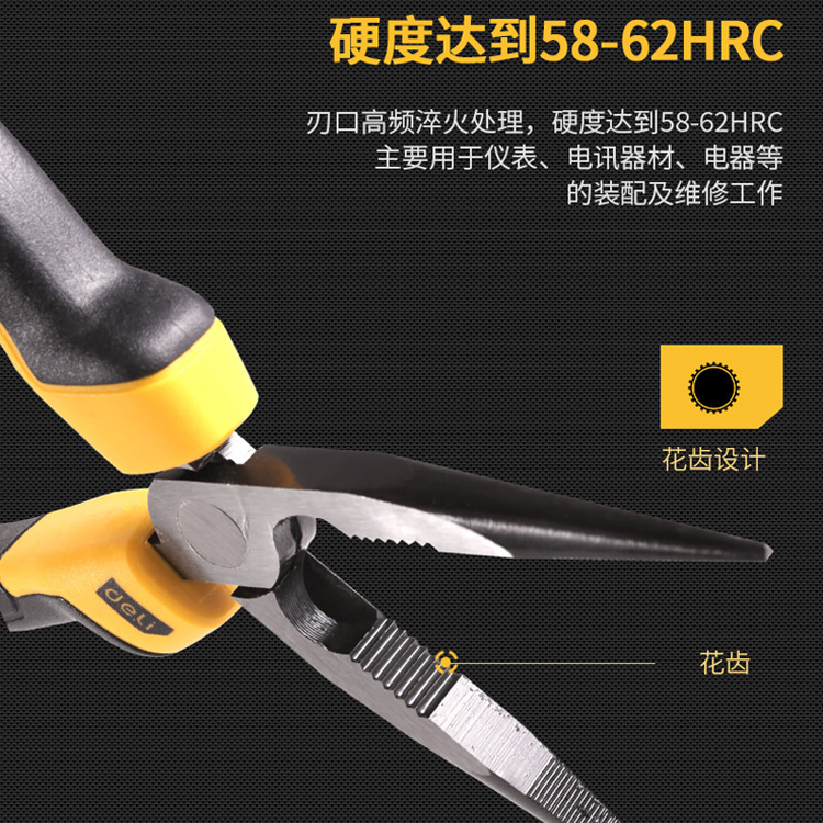 尖嘴鉗刃口高頻淬火,硬度達(dá)到54-62HRC,剪切力強