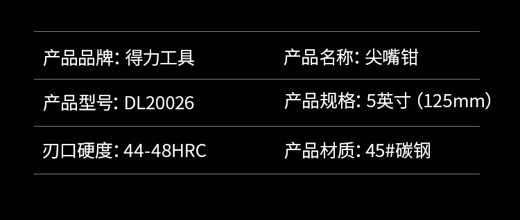 尖嘴鉗5英寸DL20026產(chǎn)品尺寸長(zhǎng)125*56mm