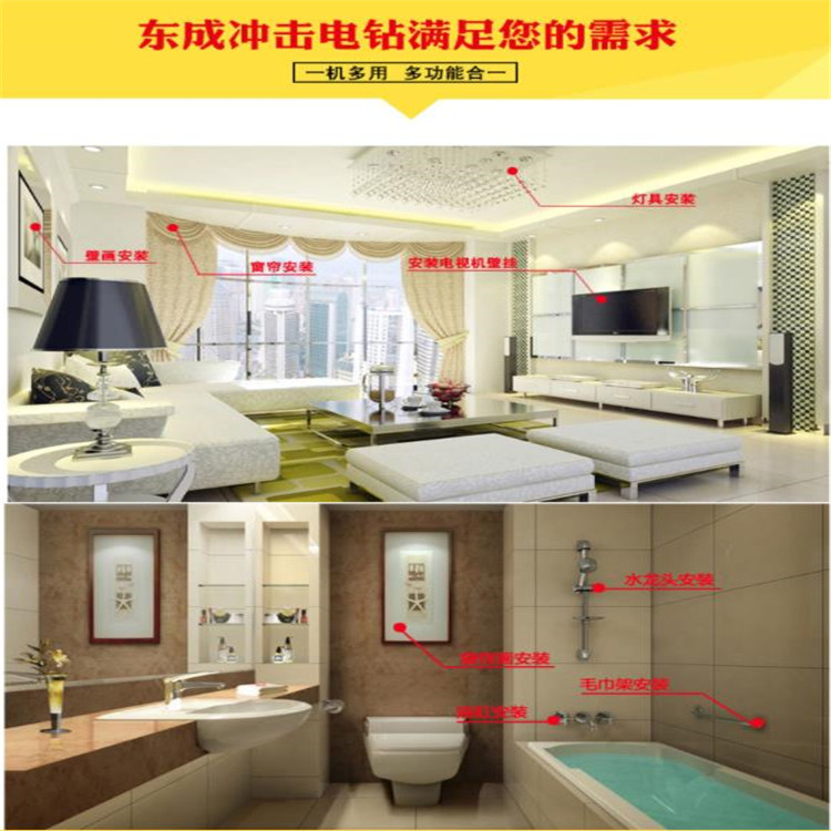 東成沖擊電鉆適用于家居安裝、組裝家具等