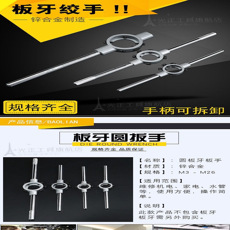 板牙鉸手高強(qiáng)度板牙架,鋅合金鋼鍛造,硬度高,韌性好