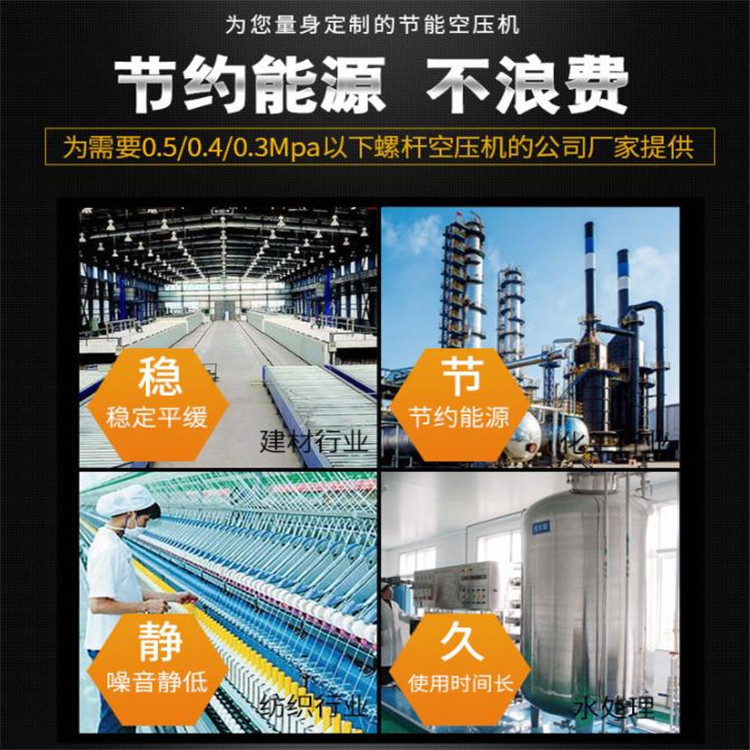 永瑩低壓螺桿空壓機(jī)功率,適用建材行業(yè)、化學(xué)工業(yè)、紡織行業(yè)、水處理等