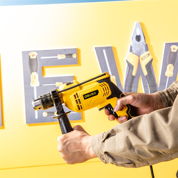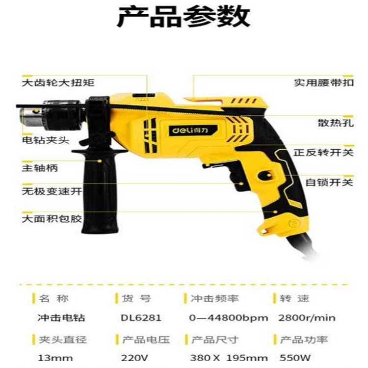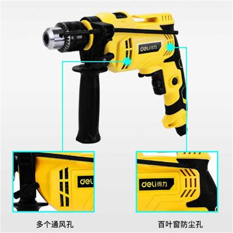 得力沖擊電鉆多孔散熱,經久耐用,安全作業(yè)不擔心
