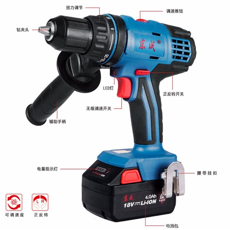 東成鋰電充電式?jīng)_擊電鉆起子機(jī)18V雙速DCJZ13E型東城手電鉆沖擊鉆