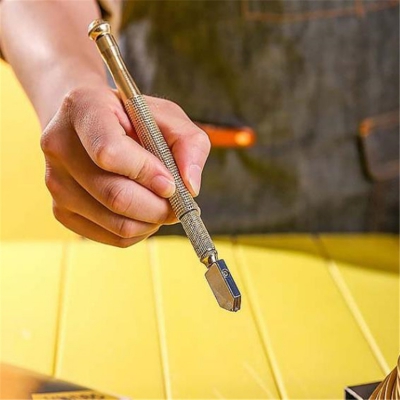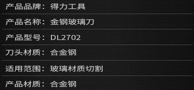得力玻璃刀刀口采用YD05特制鎢鋼,經(jīng)熱處理后硬度可達95HRC,切削鋒利