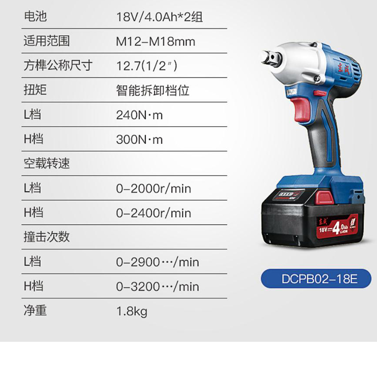 東成充電式無刷沖擊扳手DCPB02-18(E型)產(chǎn)品參數(shù)