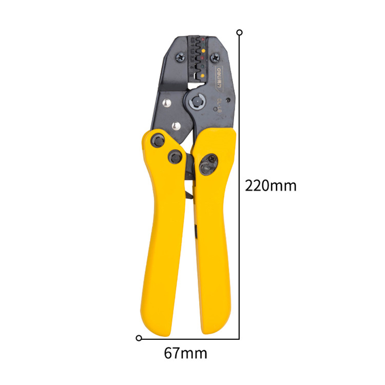 得力冷壓鉗多功能棘輪壓接鉗精密預(yù)絕緣裸端子電工夾線壓線鉗工具