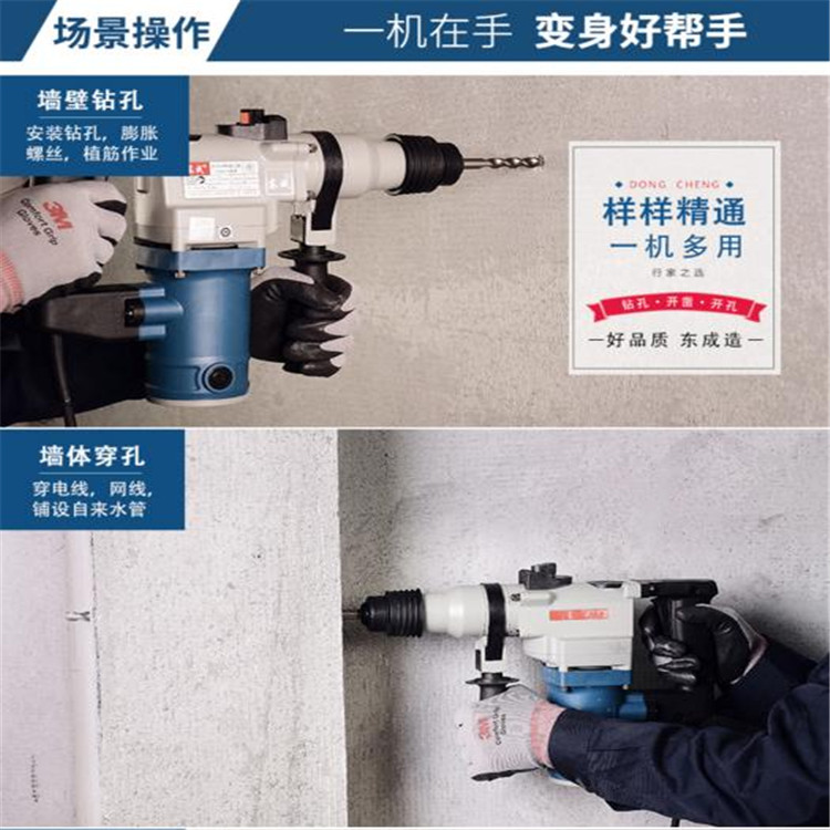 東成多功能電錘鉆孔安裝、水電開槽全能型電動工具