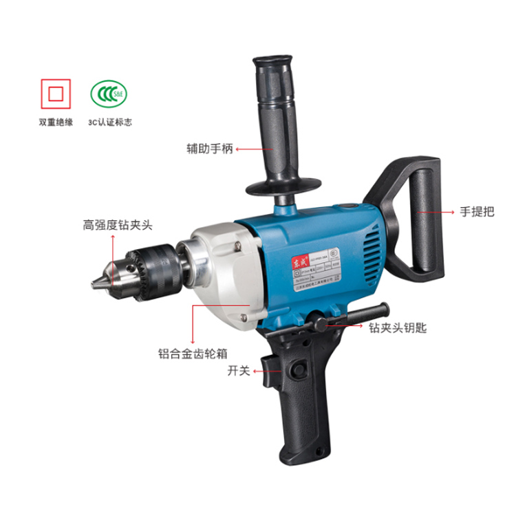 東成飛機鉆攪拌鉆大功率膩子粉攪拌機工業(yè)級手電鉆電動工具