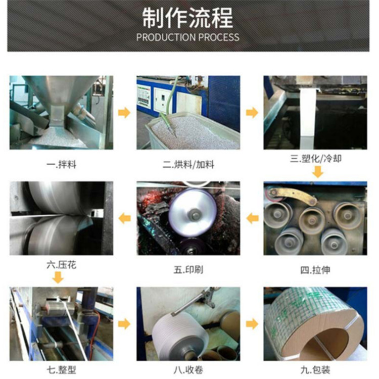 PET打包帶,優(yōu)質原料,端面平滑、壓花清晰、防水防潮。