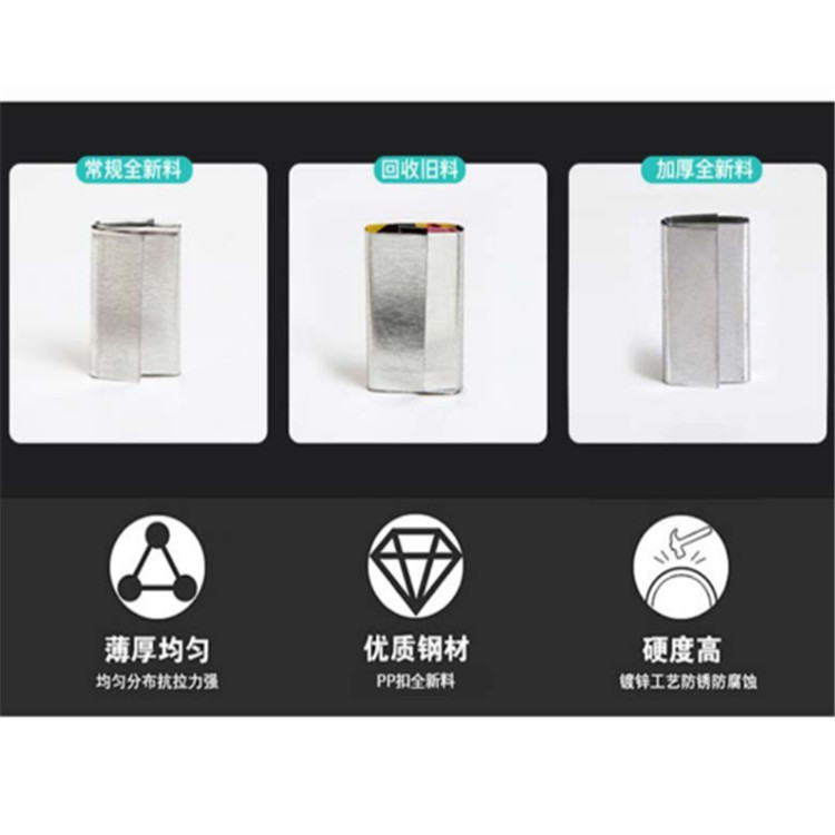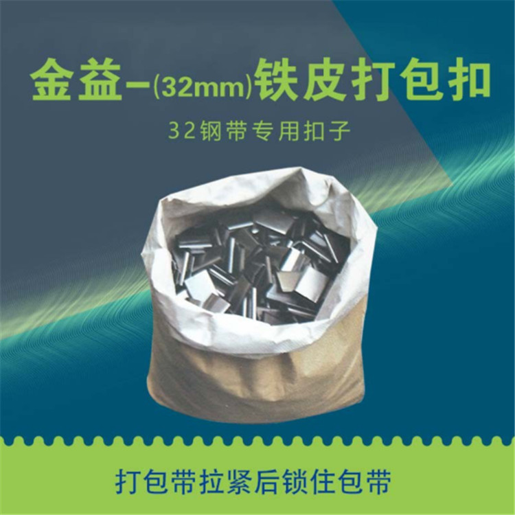 金益(32mm)鐵皮打包扣,邊滑光滑無棱角,避免打包劃手和對貨物的損壞。