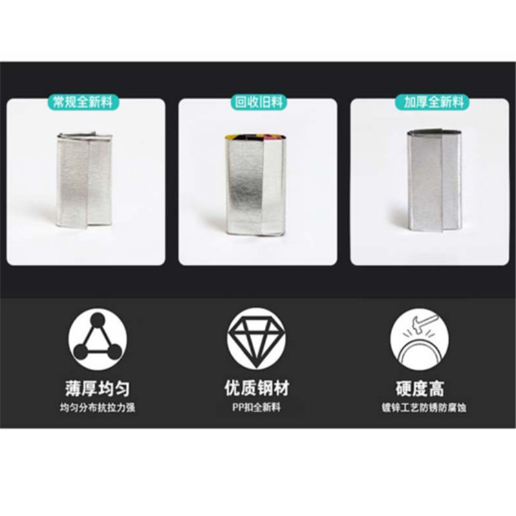 鍍鋅打包扣,厚度強度大,不容易生銹,咬合力大。
