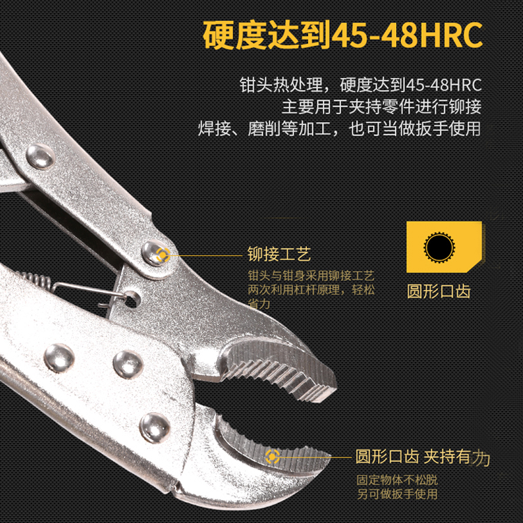 圓口帶刃大力鉗鉗頭熱處理,硬度達(dá)到45-48HRC