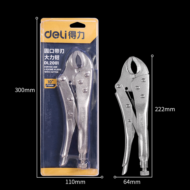 寧波得力鐵皮大力鉗DL2001高碳鋼焊接C型圓口帶刃固定工具