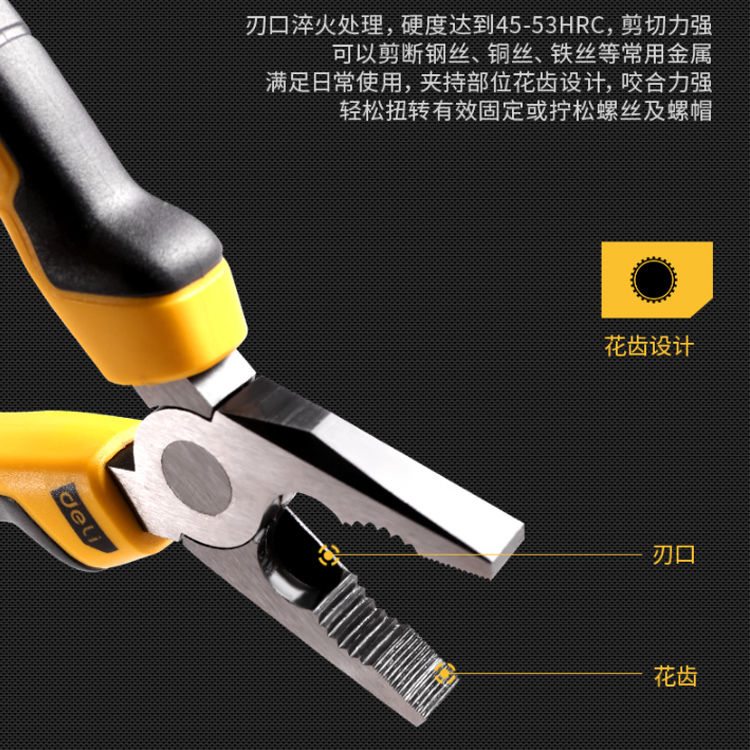 得力高碳鋼老虎鉗電工鋼絲鉗工業(yè)級斷線平口鉗多功能鉗子6英寸