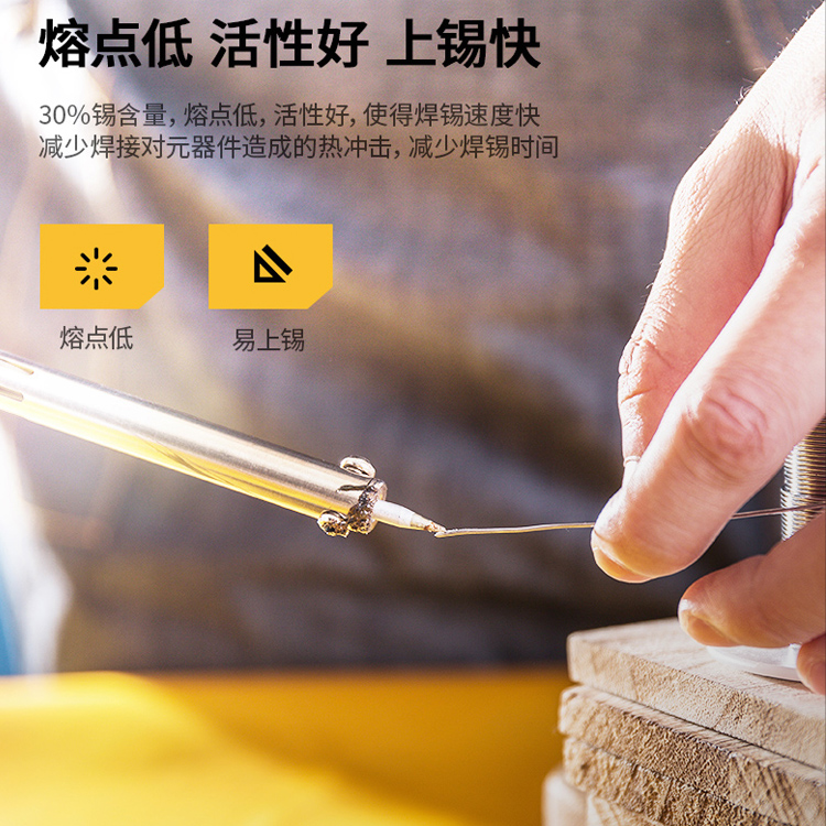 焊絲30%錫含量,熔點低,活性好,使得焊錫速度快