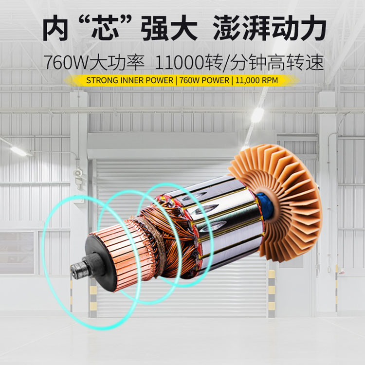 磨光機(jī)內(nèi)芯強(qiáng)大 澎湃動(dòng)力 760W大功率 純銅材質(zhì)電機(jī)