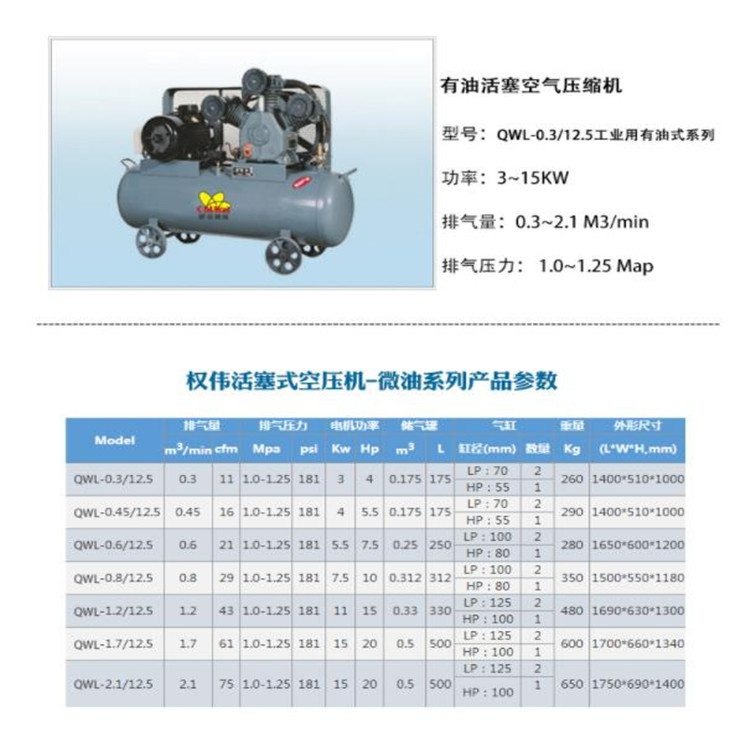 權(quán)偉有油活塞式空壓機(jī),QWL-0.3,上氣速度快