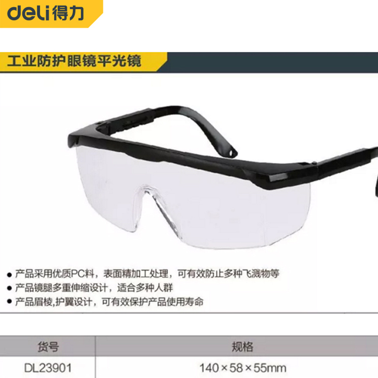 得力工具 DL23901工業(yè)防護眼鏡透明平光鏡,
