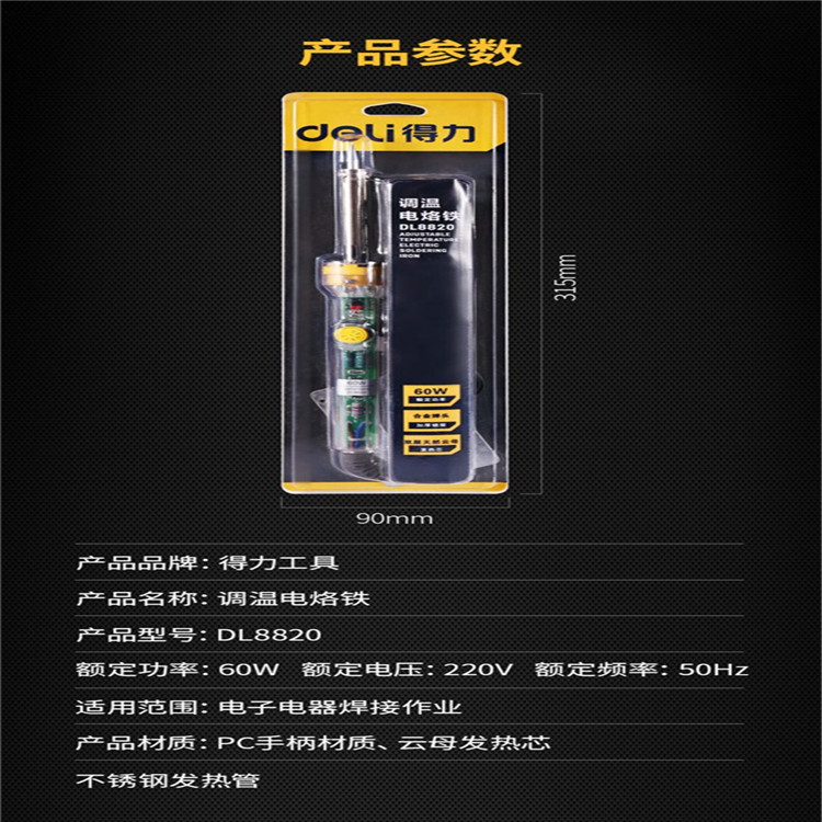 得力調(diào)溫(恒溫)電烙鐵DL8820套裝家用維修外熱式電焊筆參數(shù)