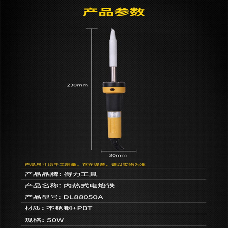 得力內(nèi)熱式電烙鐵雙層線圈發(fā)熱設(shè)計,防止局部溫度增加,