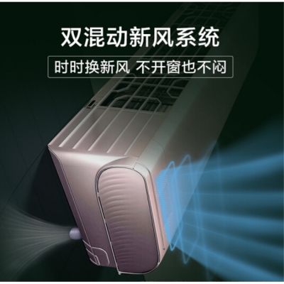 美的變頻冷暖壁掛式智能空調(diào)雙混動(dòng)系統(tǒng),時(shí)時(shí)換新風(fēng)。