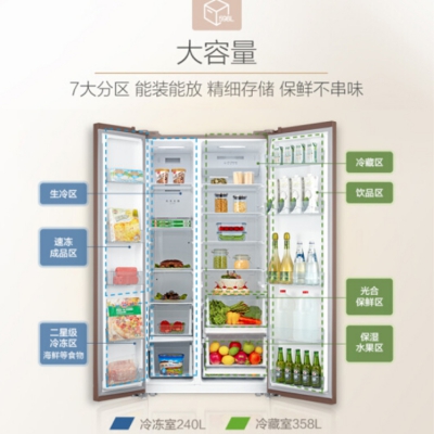 美的對開門雙門家用冰箱大容量,分區(qū)存儲,可滿足兩周需求。