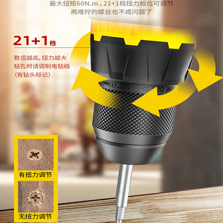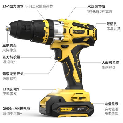 得力(deli) 18V無(wú)線家用雙鋰電電鉆沖擊鉆21+1擋位可調(diào)節(jié),輕松應(yīng)對(duì)不同工況。