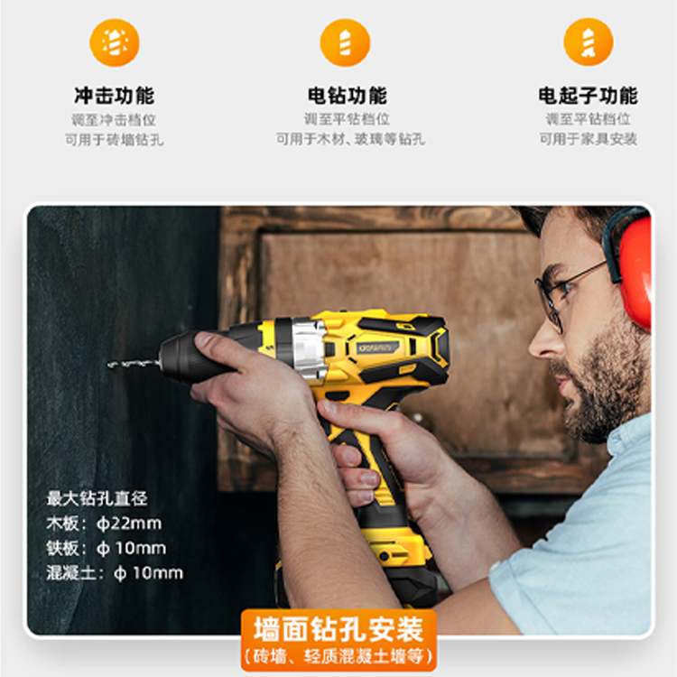 得力(deli) 18V無(wú)線家用雙鋰電電鉆沖擊鉆兼具組裝,鉆孔,墻面安裝功能,