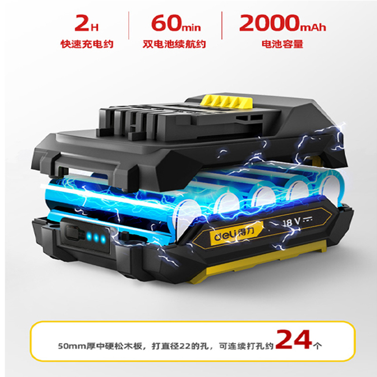 得力(deli) 18V無(wú)線家用雙鋰電電鉆沖擊鉆18V強(qiáng)電壓,兩塊大容量鋰電池。