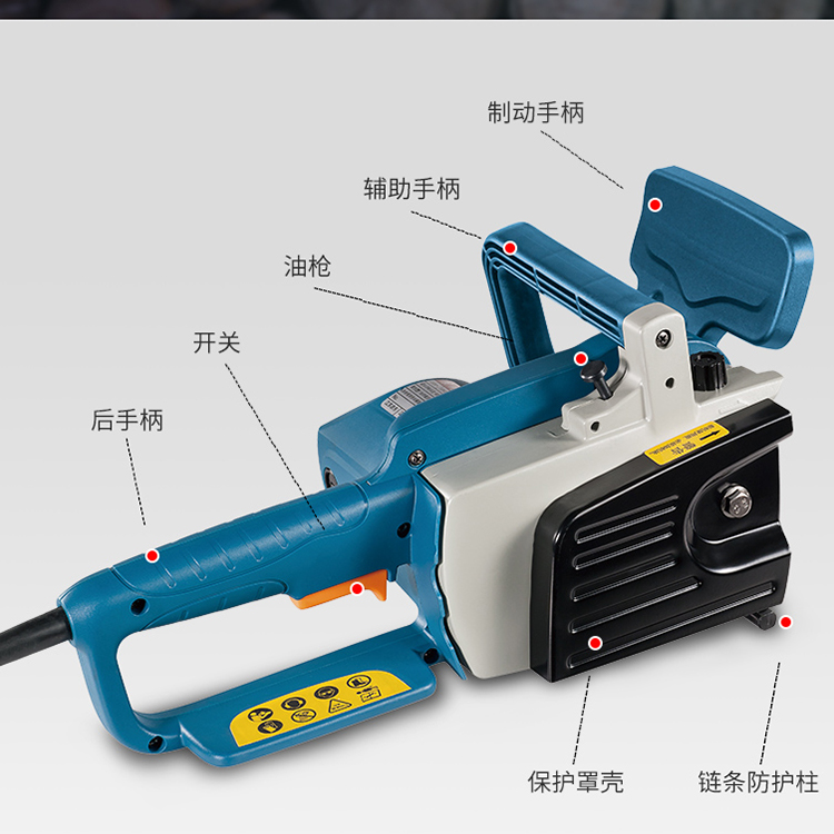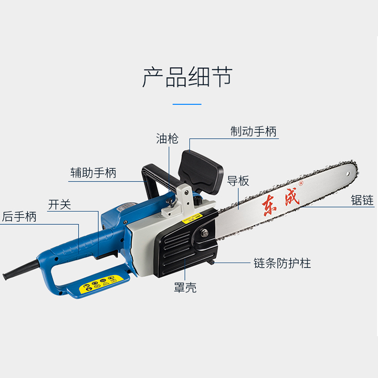 東成電鋸伐木鋸M1L-FF03-405家用小型手持電鏈鋸,反保護(hù)開關(guān),保護(hù)操作安全,按住旁邊的保護(hù)按鈕之后,再按開關(guān)進(jìn)行切割操作。