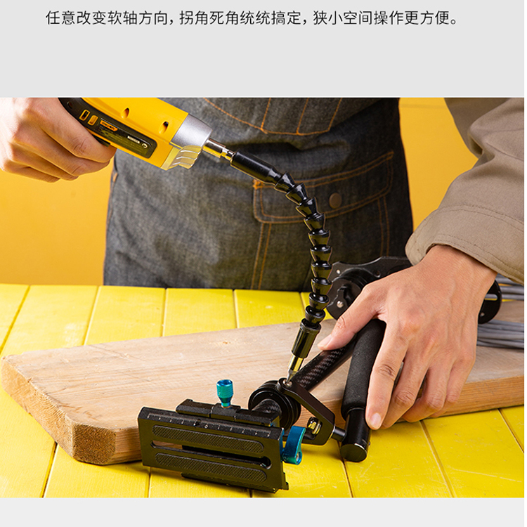 得力電鉆配置萬向軟軸,狹小空間操作更方便。