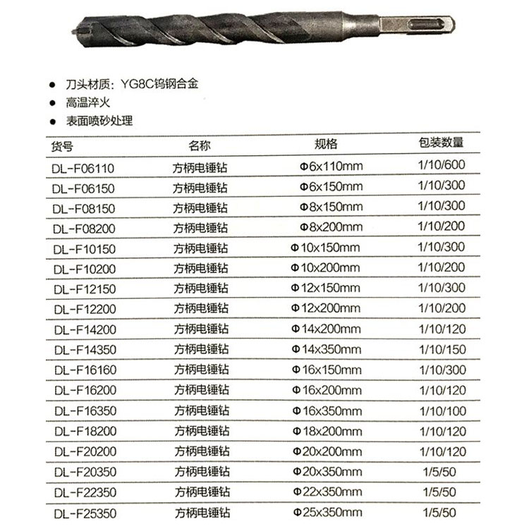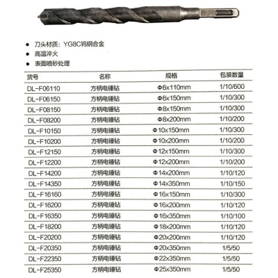 得力(deli)四坑方柄電錘鉆頭 沖擊鉆頭 混凝土建工鉆頭,
