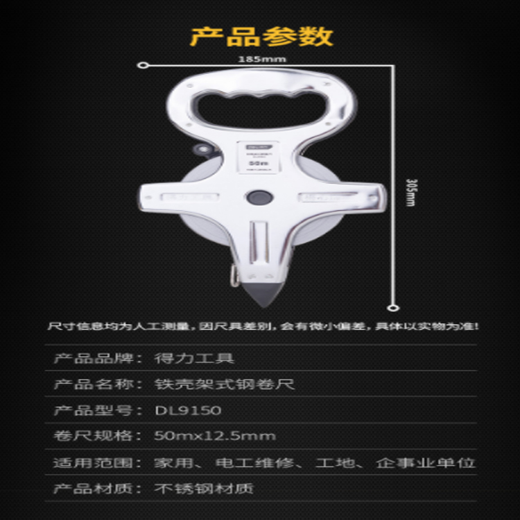 得力(deli) 金屬外殼架式手提插尺鋼卷尺工程測量尺子50m*12.5mm DL9150