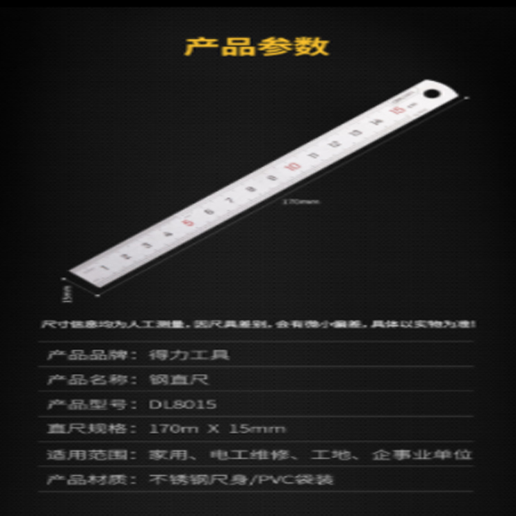 得力(deli) 不銹鋼直尺刻度尺公制刻度繪圖鋼尺15cm DL8015