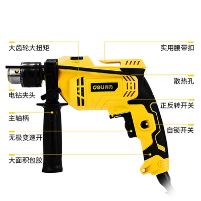 得力(deli) 13毫米沖擊鉆手電鉆家裝維修,電氣工業(yè),應急維修,攜帶方便。