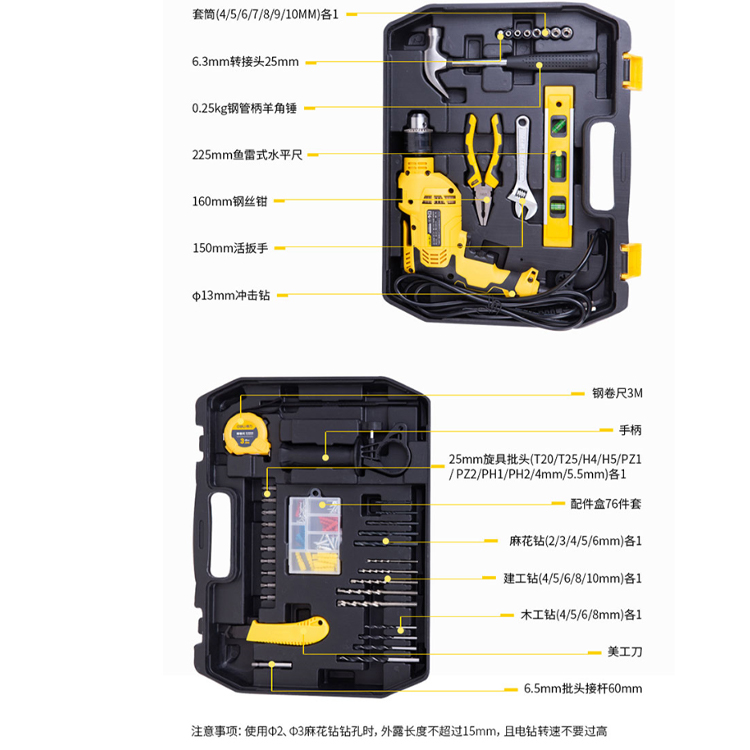 得力(deli) 13毫米沖擊鉆手電鉆百件套裝,全副武裝,功能齊全,維修方便。