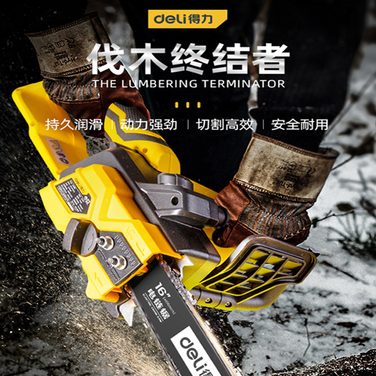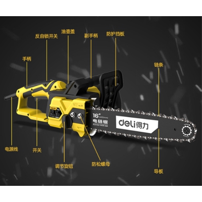 得力(deli) 大功率家用電鏈鋸動力強勁,切割高效,安全耐用。